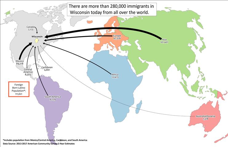 Op 29 mei 1848 werd Wisconsin formeel de 30e staat van de Verenigde Staten. Tijdens de Amerikaanse Burgeroorlog hoorde het bij de Unie. Later in het decennium emigreerden Duitsers, Polen, Noren, Ieren, Nederlanders, Belgen, Zwitsers en andere Europeanen naar Wisconsin. Deze immigranten waren op zoek naar betere economische kansen, en in sommige gevallen op de vlucht voor politieke onderdrukking.